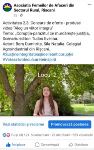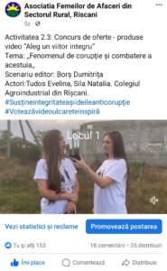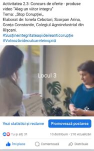 La data de 29 septembrie 2023, în cadrul proiectului „Eforturi comune a societății și tinerilor în prevenirea fenomenului corupției civile” a avut loc activitateade premiere a elevilor, din cadrul Activității 2.3: Concurs de oferte – produse video ”Aleg un viitor integru”.