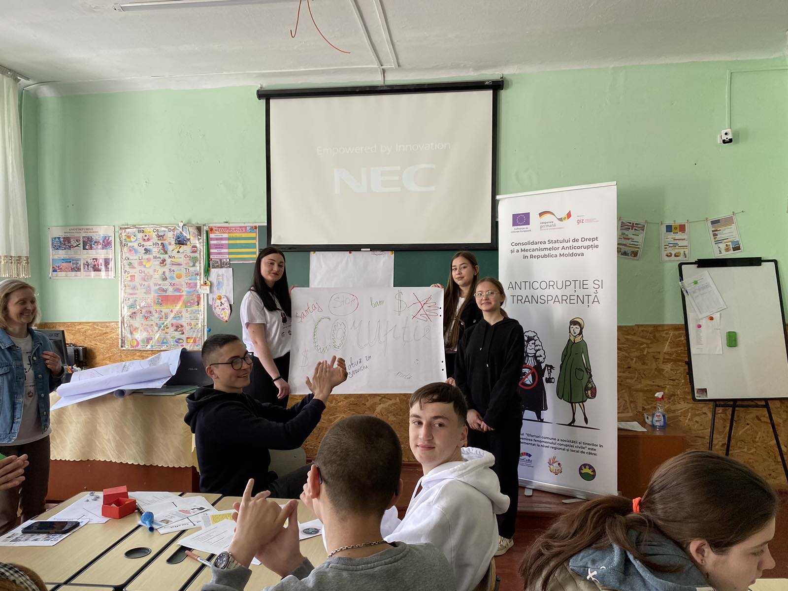 La data de 10 mai, elevii voluntari din Colegiul Agroindustrial Din Rîşcani membri ai Clubului de educația juridică „Tinerii împotriva corupției”, au vizitat Gimnaziul Gălășeni, Rîșcani pentru a desfășura un Workshop de sensibilizare și instruire a elevilor „Corupția de la mic la mare – educația anti-corupție înșcoli”. În cadrul activității organizatorii au dorit să demonstreze că educația populației și în special a noilor generații poate fi pilonul de rezistență pe care să se construiască o viziune corectă asupra corupției omniprezente și care să creeze o opinie publică fermă și intransigentă.