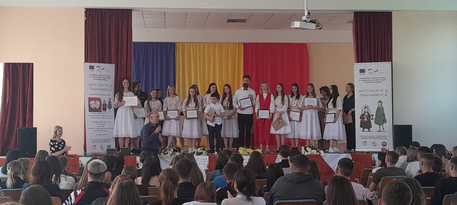Fenomenul corupției a fost prezentat de pe scena sălii de festivități de către Teatru model Doina din cadrul instituției, conducător artistic Telepeț Vasile. Campania dată, de informare a tinerilor despre efectele nocive ale corupției prin artă, și-a propus să ajungă la conștiința a cât mai multor cetățeni pentru a reuși eradicarea fenomenului dat din societate.